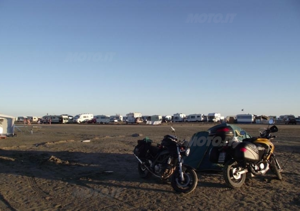 "Questo è l’ultimo posto in Europa così libero”. Se a dirlo è una veterana hippy come Natalie c’è da crederle. Neanche il tempo di scegliere uno spiazzo libero e spegnere le due giapponesi (una Transalp 700 e una Suzuki Sv 650), che da un camper marroncino ci corre incontro lei, sbracciandosi: “Attenti che i cavalletti affondano nella sabbia. Prendete queste assi. Anche io sono stata motociclista, sapete?”.