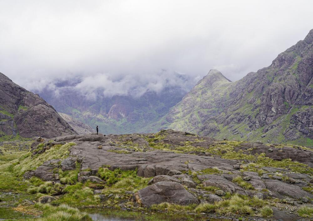 Arrivati al paese di Durness, posto all'estremità occidentale della costa nord scozzese, puntiamo la ruota della moto verso sud e seguendo sempre l'impervia strada che percorre la costa stavolta occidentale arriviamo in un paio di giorni, durante i quali ha ripreso a tormentarci il ruvido clima scozzese, al celebre castello di Eilean Donan e alla magnifica Isola di Skye, nella quale visitiamo dopo un breve tratto in barca l'incontaminato Loch Coruisk. Ripresa una moto continuiamo il nostro viaggio sulla costa verso sud, attraversando le favolose vallate di Glen Nevis e Glen Coe, fermandoci per una foto al solitario Stalker Castle e per un giro a piedi della bella cittadina di Oban.