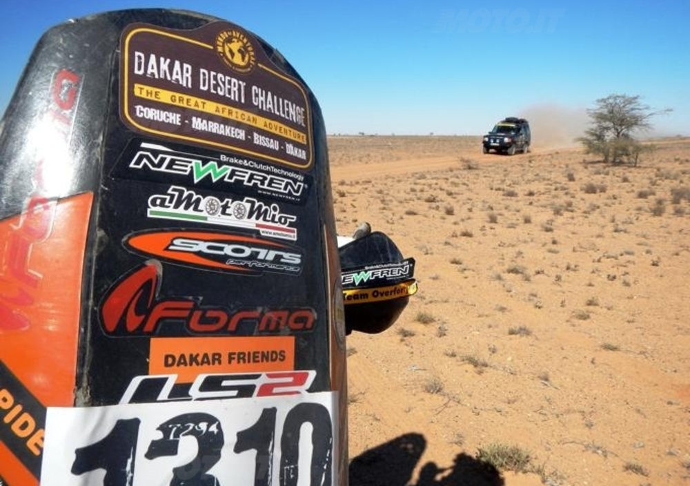 Arriverò solo in tarda serata in albergo, alle 22. Durante un controllo del mezzo scopro di avere due viti spanate tagliate all’interno del telaio, che solo con l’aiuto di due incredibili meccanici dell’organizzazione e grazie a mezzi di fortuna riusciamo a montare giusto in tempo per poter riposare due ore prima della tappa successiva. Come in una vera Dakar!