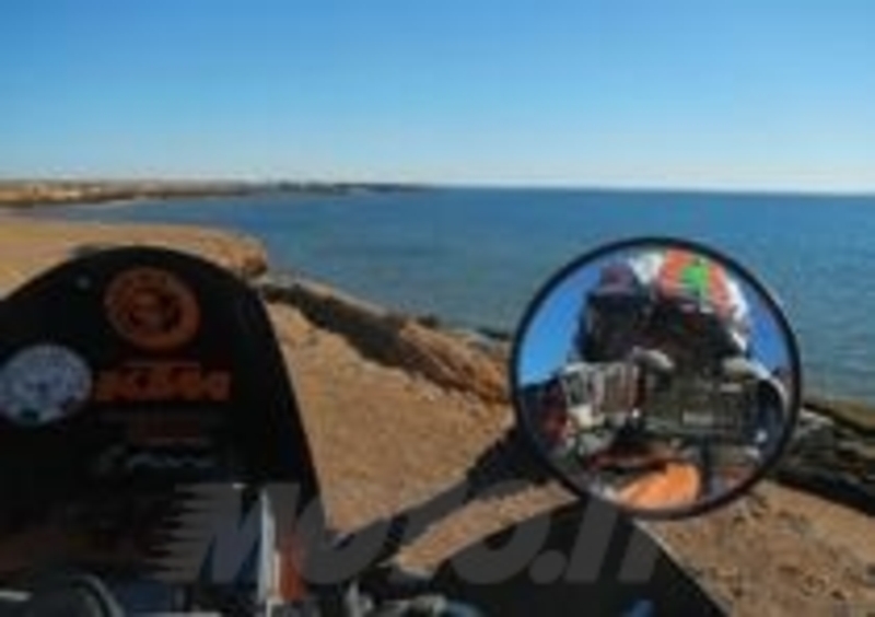 Solchiamo una splendida pista sabbiosa che corre lungo il mare per svariati chilometri e ci gustiamo un frugale panino condiviso, godendo della vista di questa meraviglia. Ma i chilometri da percorrere sono ancora molti e alle 18, con i miei tre compagni, scopriamo che ci attendono ancora un centinaio di chilometri di off e quindi ancora diverse ore di guida nel buio più completo.