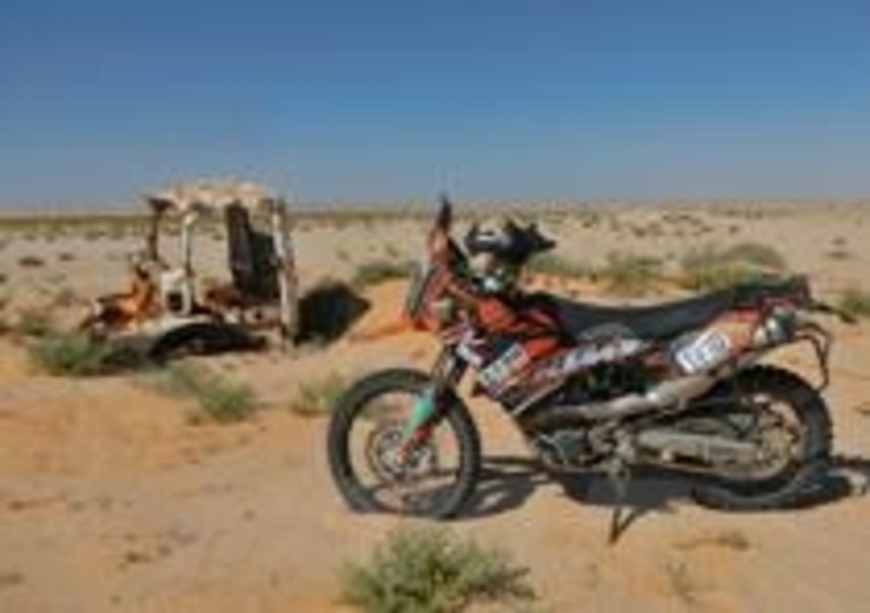 La giornata si apre con un cielo freddo e terso. Oggi ci aspetta un lunga cavalcata e dopo aver dedicato alcuni minuti alla foto di copertina di questa edizione della Dakar Desert Challange, partiamo su piste semplici e veloci. Mi sento pago del gusto del gas e comincio a provare il desiderio di dedicarmi ad immortalare immagini fotografiche. La cosa mi affascina e mi gratifica, tendo a ridurre la velocità e la sensazione di pace e solitudine mi pervade. Mi sento in pace con me stesso ed assaporo con un gusto nuovo la guida.