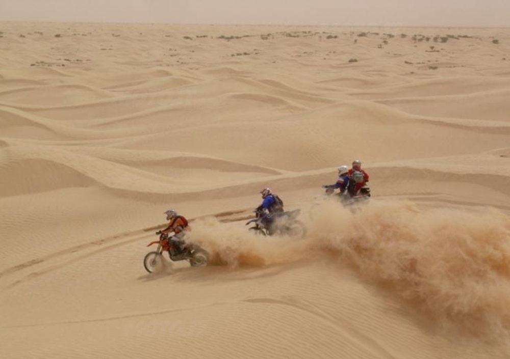 Riprende a scorrere la terra, i sassi e la sabbia sotto le nostre ruote, mentre la mente ripassa l’esperienza appena vissuta. Ci fermiamo per una delle piacevoli pause in cui mentre ci togliamo i caschi, il gruppo guida, ci da acqua, succhi di frutta a volontà e tavolette di cioccolata che, a dispetto della temperatura, è tutt’altro che sgradita! Sono passati tre lunghi giorni tra le dune e le mani, nonostante i guanti, hanno le vesciche; i piedi e le caviglie 8/9 ore al giorno dentro gli stivali, sono sempre più indolenziti; la schiena, il collo, le ginocchia, reclamano un vero letto… Ma i giorno successivo, come previsto (e non è poco), raggiungiamo la nostra meta: l’oasi di Ain Ouadette.