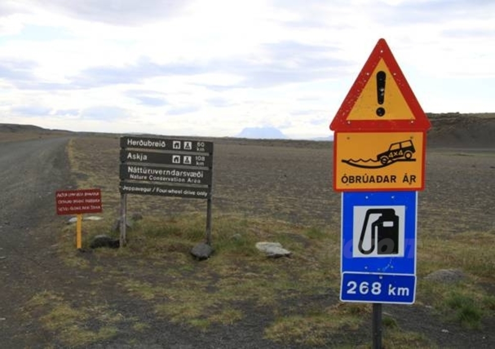 Volendo spostarsi da uno qualsiasi dei piccoli centri del versante nord dell’isola, ad uno di quelli della costa a sud, diametralmente opposti, lungo la n°1 si percorrono 8/900 km; in alternativa è possibile tagliare l’isola in diagonale lungo una delle diverse piste interne. La differenza sostanziale, oltre al notevole risparmio di chilometri, consiste nel fatto che le piste, denominate con la lettera F, davanti al numero che le contraddistingue, sono percorribili esclusivamente da mezzi a 4 ruote motrici, sono spesso prive di ponti e di conseguenza il grande numero di fiumi, torrenti e corsi d’acqua generati dall’abbondante disgelo estivo, devono essere attraversati a guado; inoltre sono del tutto sprovviste di punti di rifornimento di carburante.