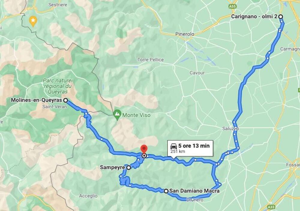 Dopo pranzo il Sole è ancora li a tenerci compagnia e allora perché non fare una scappata sul Colle Sampeyre a 2.284 metri, occasione per un giretto in off sulla vetta, per poi scendere su asfalto in Val Macra a Dronero e percorrere un anello che ricollega la città medioevale di Saluzzo.