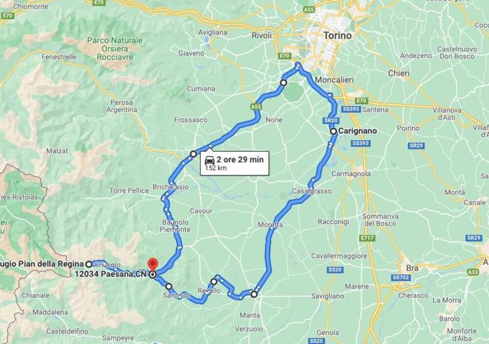 Scendiamo verso valle, invece che passare da Rifreddo come all’andata, deviamo verso Barge e Cavour, cittadina tipica conosciuta per la feste delle mele che si svolge ogni novembre, qui ci sentiamo a casa, sono le zone che si percorrono in notturna durante l’HAT, tanti bei ricordi!